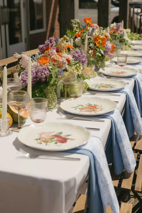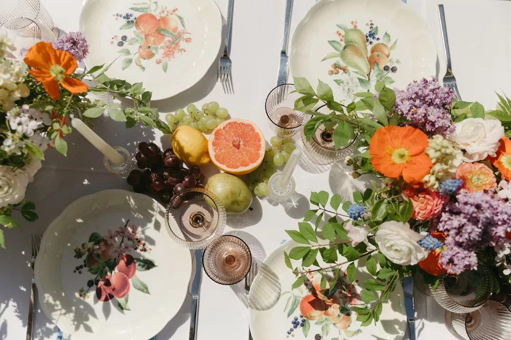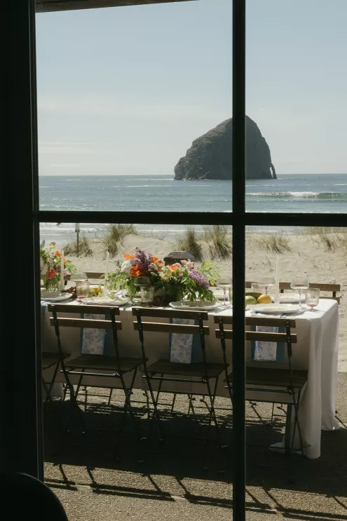 Inspired by Lenox’s “Orchard in Bloom” china collection, this editorial shoot reimagined the rugged Oregon coastline as a garden escape. Set at Pelican Brewing in Pacific City, the design played with contrast—pairing the crisp, powerful energy of the ocean with the softness of florals and fruit-laden details.