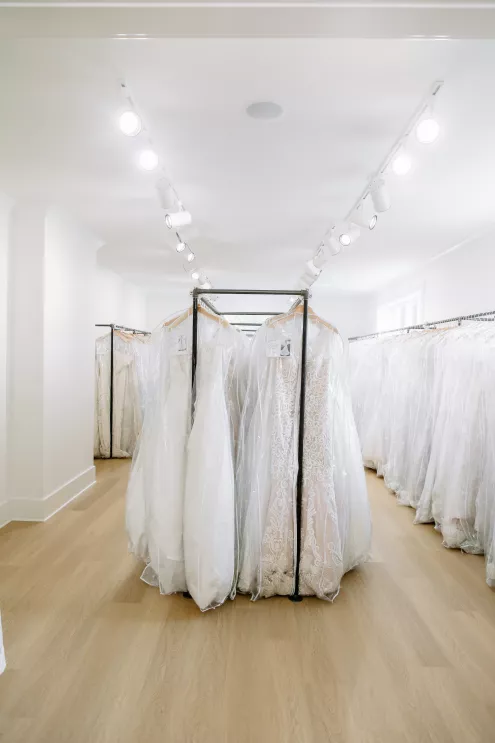 Blue Sky Bridal is a bridal consignment store offering new, samples and once-worn wedding dresses. Since 2007, we’ve been uniting gorgeous wedding dresses with eco-friendly brides! We carry a wide range of designer and brand name wedding gowns up to 25-65% off. All dresses are sold off-the rack and most are priced $1,000-$3,000. Located in Portland, San Francisco and Seattle.