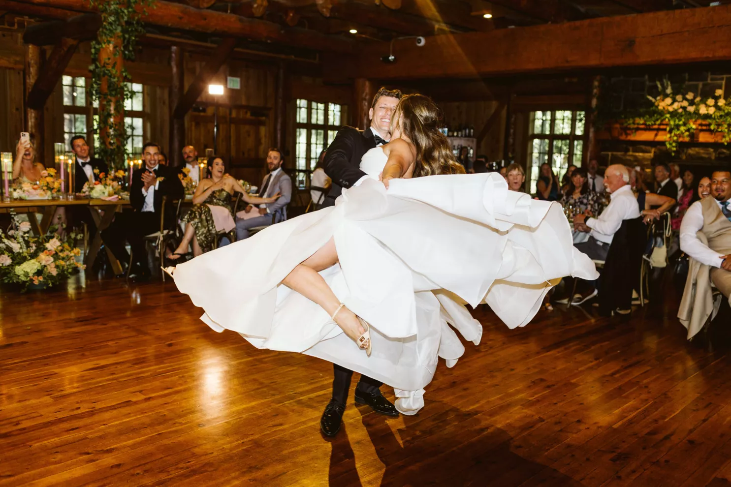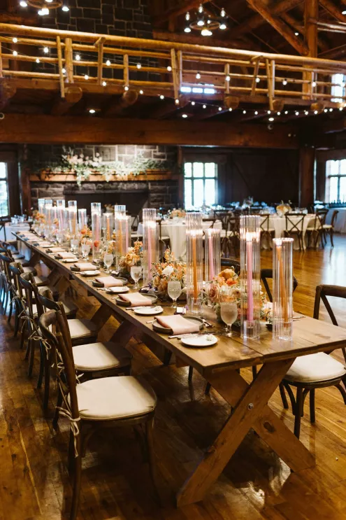 The couple envisioned a day that felt warm and truly alive—where rustic log cabin charm met the vibrance of seasonal blooms.