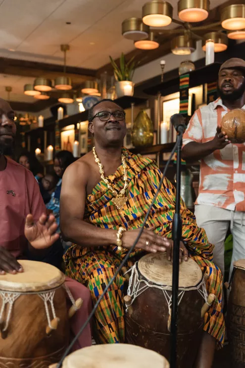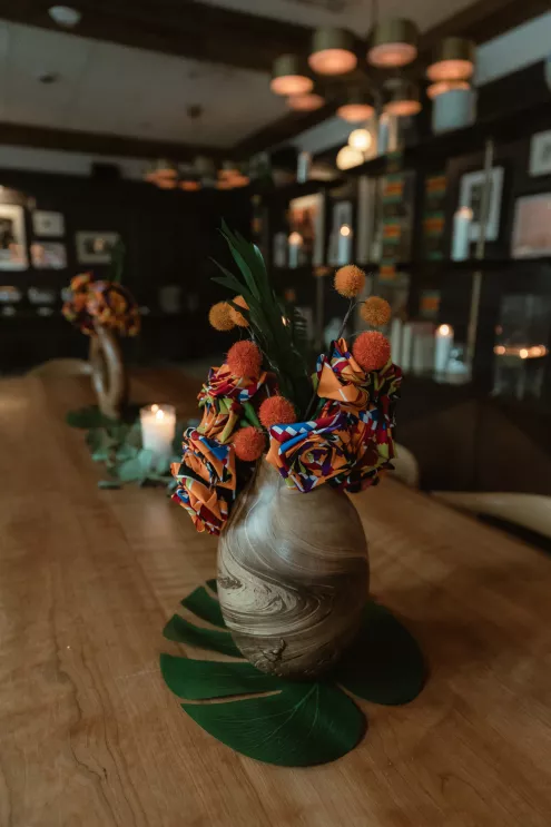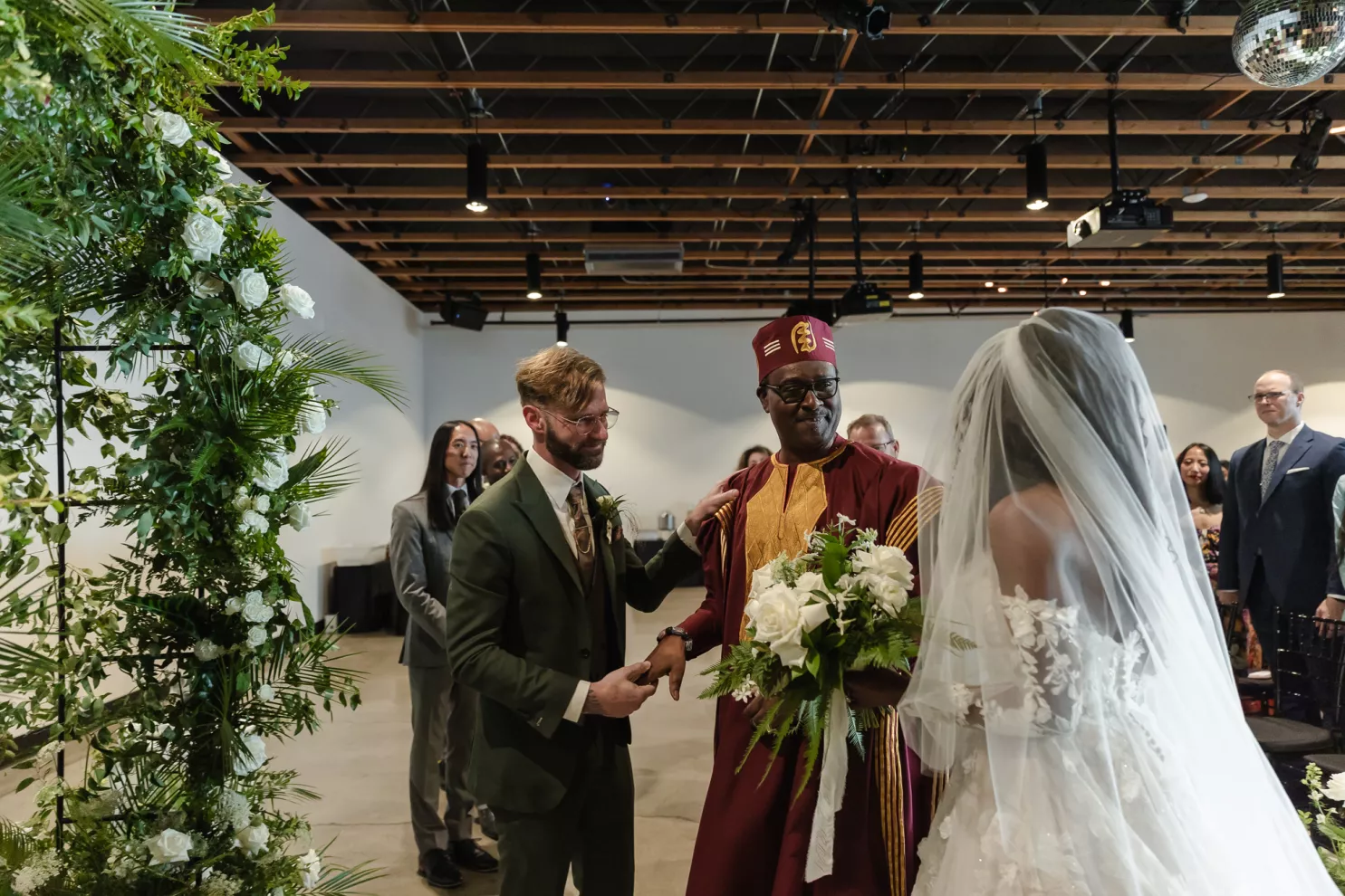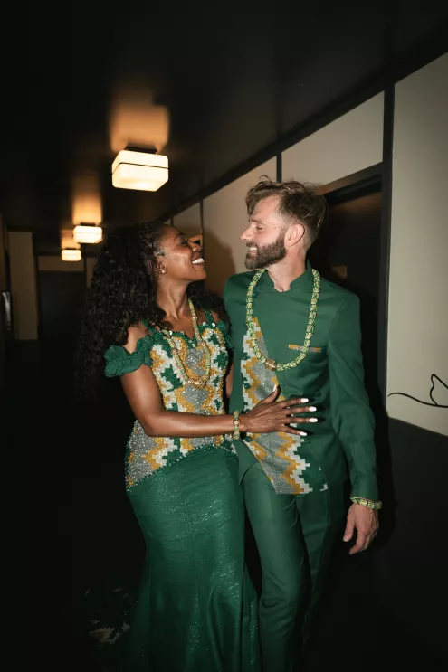 Starting with a traditional Ghanaian celebration where guests were encouraged to wear African attire or clothing that honored their own cultures - the crowd forming a rich cultural mosaic. Chef Oui at the Hoxton Portland prepared an authentic Ghanaian menu with kelewele, goat meat soup, suya spiced lamb chops and fried fish. The electrifying drum and dance performances, heartfelt speeches and musical performances set the tone for the wedding weekend to be lively and unifying.