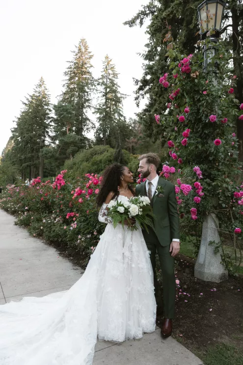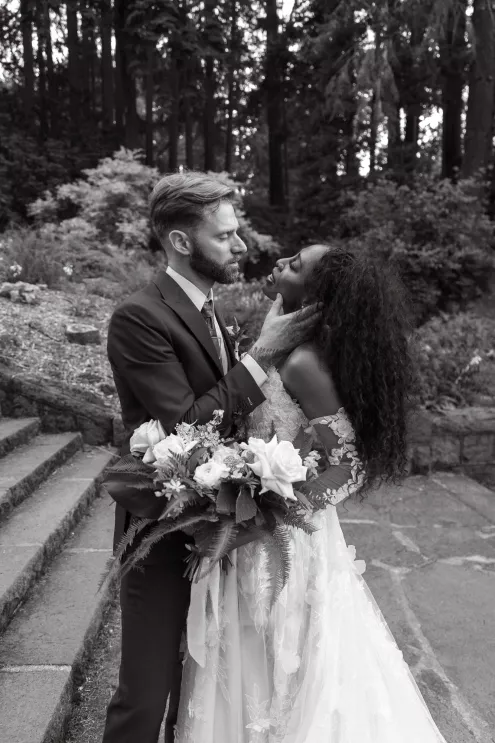Jessica Da Rosa and Jeremy Mensah wanted their wedding to be an outward reflection of who they are both individually and as a couple. They met in Portland, so they knew they wanted to get married in the City of Roses and show their family and friends the beauty of summertime in the Pacific Northwest. The theme “City Meets Nature” emerged for their wedding weekend, an homage to their roots with Jessica having grown up in London and Jeremy in Oregon.